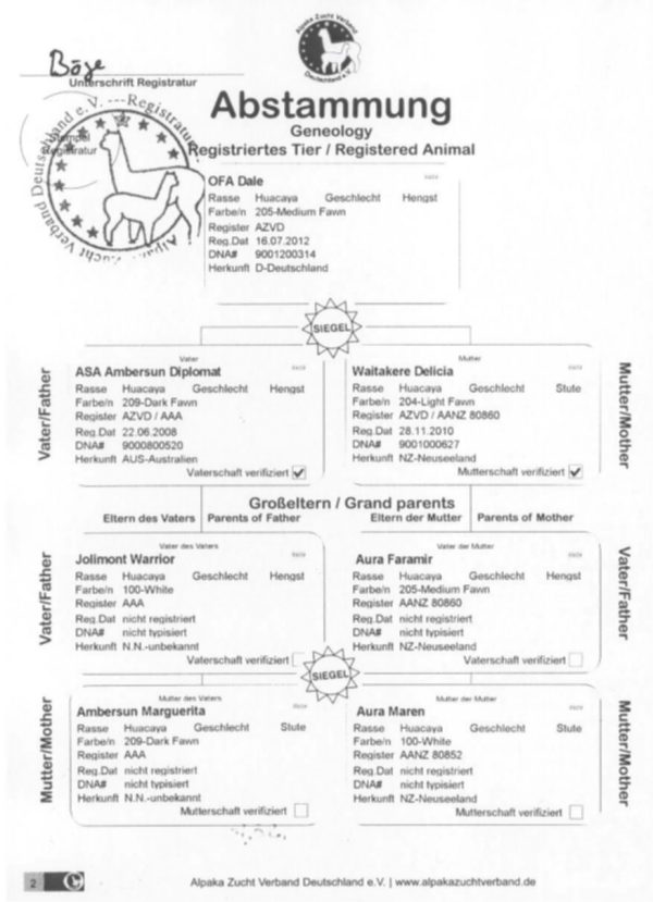 Dale stammt aus bester Genetik von Neuseeland und Australien. |
